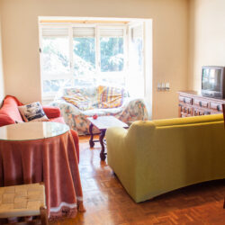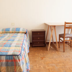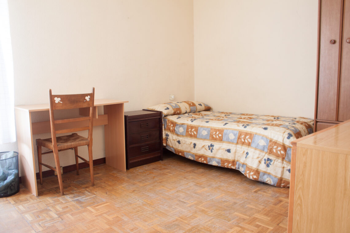 Consta de tres habitaciones, dos de ellas con cama de 90 y una con cama de 1,35. Las habitaciones disponen de armario empotrado y tienen estantería, mesa de estudio y silla. Dos baños, uno con bañera y el otro con ducha. Amplio salón y cocina con electrodomésticos nuevos.